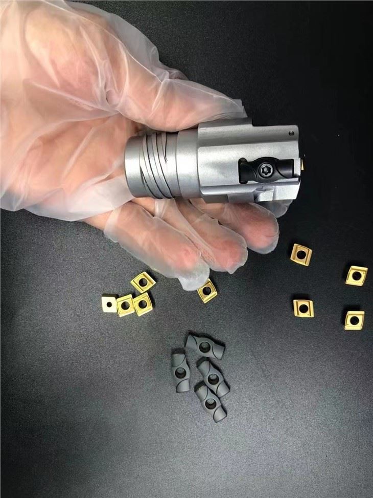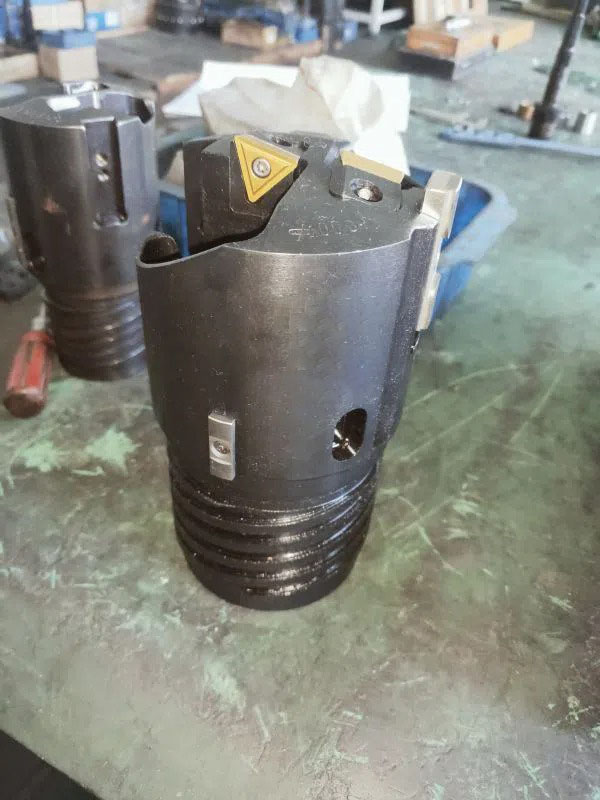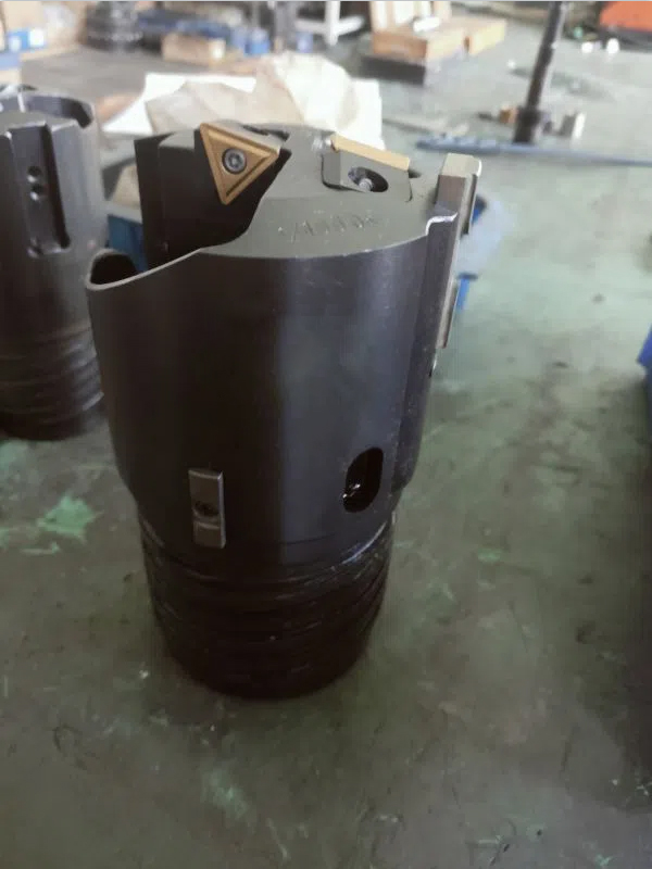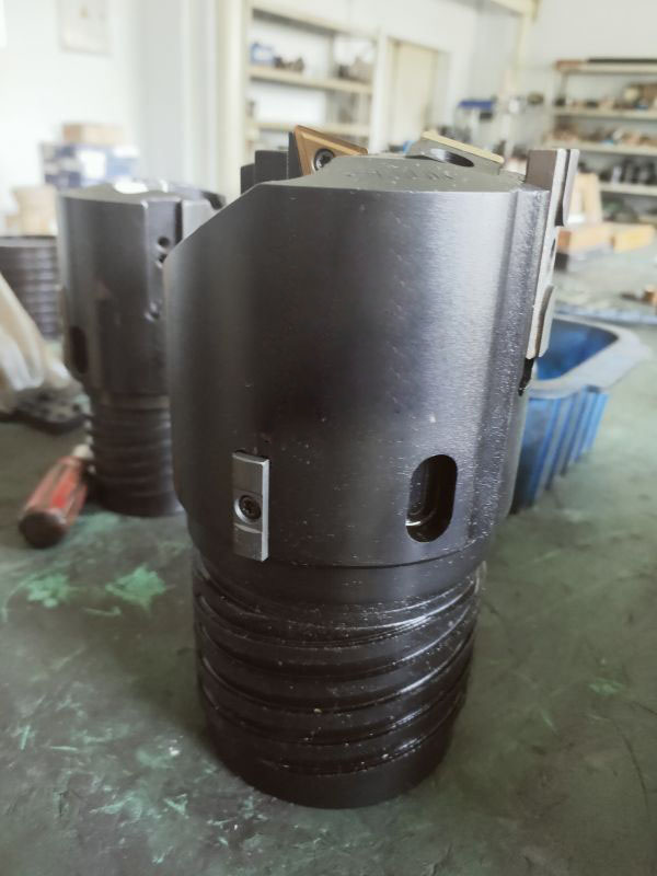 it's our manfactured BTA deep hole drilling head ,it installed 3 pcs inserts and 2 pcs 800-**A guide pads, all the inserts and guide pads is producted by our factory, the working with great efficiency